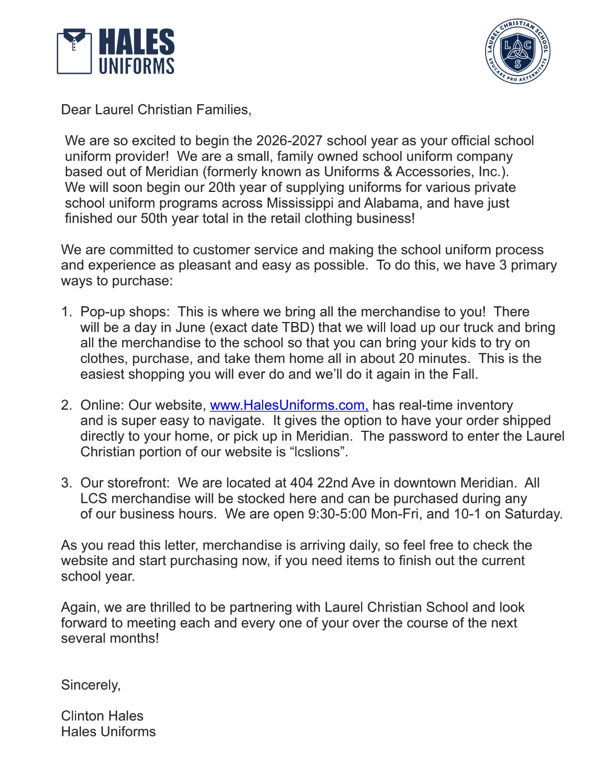 https://www.halesuniforms.com/collections/laurel-christian-school